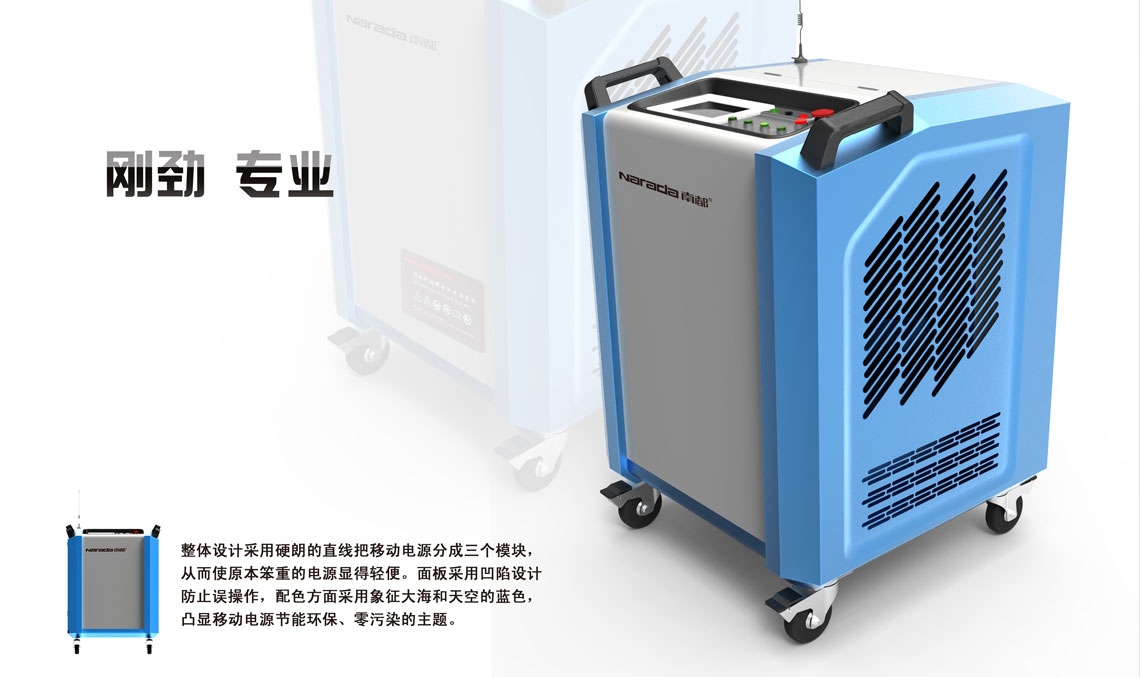 CREATIVE DESCRIPTION: This is a look of size: 700 * 678 * 965 (unit: MM) hydrogen fuel cell power system design, the overall design of the use of tough lines to move the power into three modules, so that the original heavy power seems light. Panel design with a depression to prevent misuse, color used in the symbol of the sea and the sky blue, highlighting the mobile power saving and environmental protection, zero pollution theme.