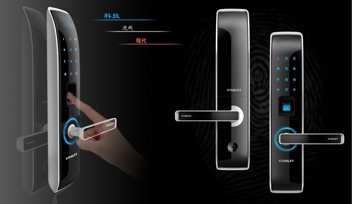創(chuàng)作說(shuō)明:指紋鎖設(shè)計(jì)采用了仿生式設(shè)計(jì),打破了現(xiàn)有的指紋鎖厚重、笨拙、呆板的感覺(jué)。在設(shè)計(jì)這款指紋鎖的時(shí)候,我們致力于突破,有效的弱化指紋鎖笨重感,突出靈動(dòng)、活躍和現(xiàn)代的設(shè)計(jì)思維。黑白的配色也襯托出產(chǎn)品的時(shí)尚感和科技感。