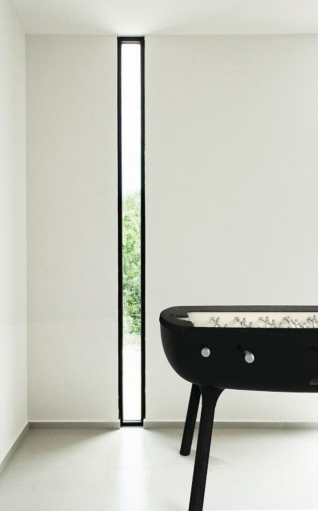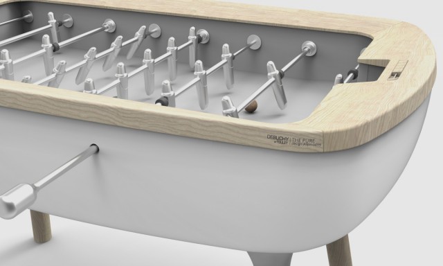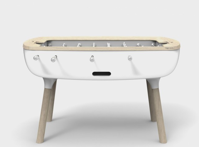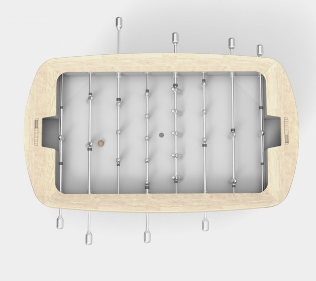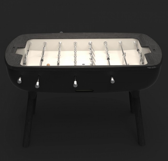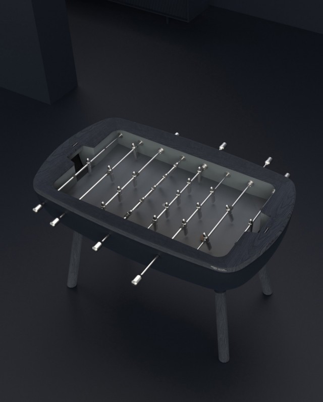 Alain Gilles設(shè)計(jì)的出發(fā)點(diǎn)是保留其“fun”的部分,在此基礎(chǔ)之上,通過外形和材料的改變,讓桌上足球機(jī)不再“屈就”于昏暗的酒吧或地下室,而是大大方方走進(jìn)客廳、臥室或酒店大堂、咖啡館中,成為一件極富裝飾性的娛樂用具。