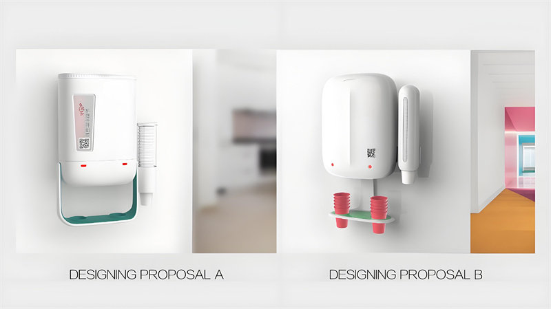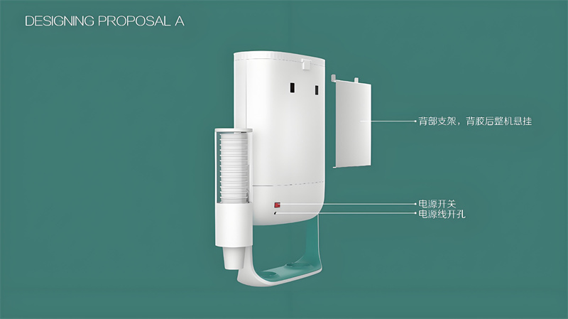設(shè)計首先源于功能。考慮到茶飲機(jī)需要掛墻安裝,我們設(shè)計了穩(wěn)固的背膠式固定架,力求安裝簡便又可靠。