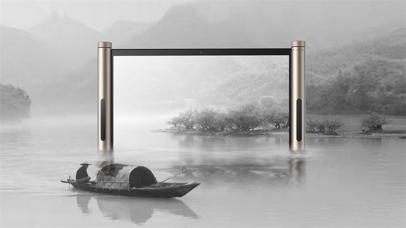 屏幕兩側(cè)的金屬立柱如古籍卷軸,展開的屏幕恰似徐徐鋪陳的畫絹。