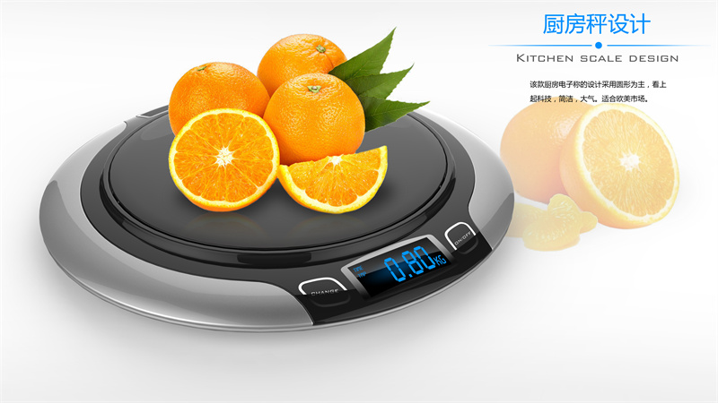 我們對(duì)這款廚房秤的外觀設(shè)計(jì)要考慮到其實(shí)用性。秤面要足夠大,方便放置各種食材,同時(shí)數(shù)字顯示要清晰,即使在光線不足的環(huán)境下也能準(zhǔn)確讀取。