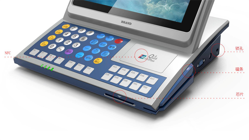 考慮到不同零售環(huán)境的靈活性需求,智能終端POS機(jī)在設(shè)計(jì)時(shí)應(yīng)便于搬移和調(diào)整位置。其底座設(shè)計(jì)要穩(wěn)固可靠,但同時(shí)需要輕量化,甚至可以引入可折疊或可拆卸的設(shè)計(jì)思路來(lái)優(yōu)化存儲(chǔ)和攜帶。還提供多種接口,如USB、HDMI、網(wǎng)線(xiàn)接口等,滿(mǎn)足不同設(shè)備的連接需求。同時(shí),采用隱藏式接口設(shè)計(jì),保持機(jī)身整潔、美觀。電池續(xù)航力的持久以及無(wú)線(xiàn)連接功能的整合是確保設(shè)備可以在沒(méi)有電源接口時(shí)仍能順暢使用。