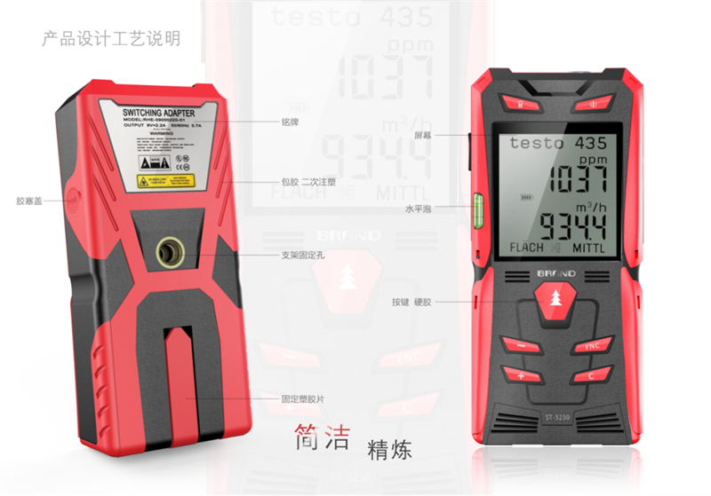 在功能布局上,我們充分考慮了用戶的使用習(xí)慣和操作便捷性。將顯示屏置于產(chǎn)品的正面中央位置,方便用戶直接觀察測量結(jié)果。操作按鍵則分布在顯示屏兩側(cè),方便用戶單手操作。此外,我們還設(shè)置了一個可折疊的支架,以便用戶將測距儀固定在水平面上進(jìn)行測量。