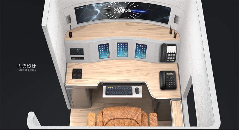 綜上所述,這款調(diào)度駕駛艙的外觀設(shè)計在整體設(shè)計感、色彩搭配、細(xì)節(jié)處理以及空間布局等方面都展現(xiàn)出了其獨到之處。